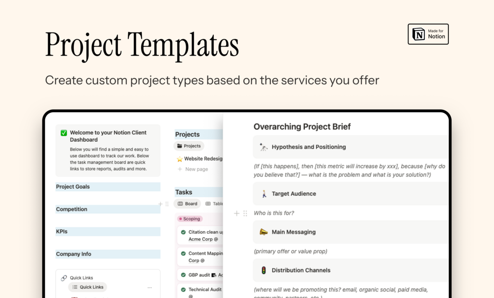 With a simple process, this template will help you organize and manage every aspect of your client work.