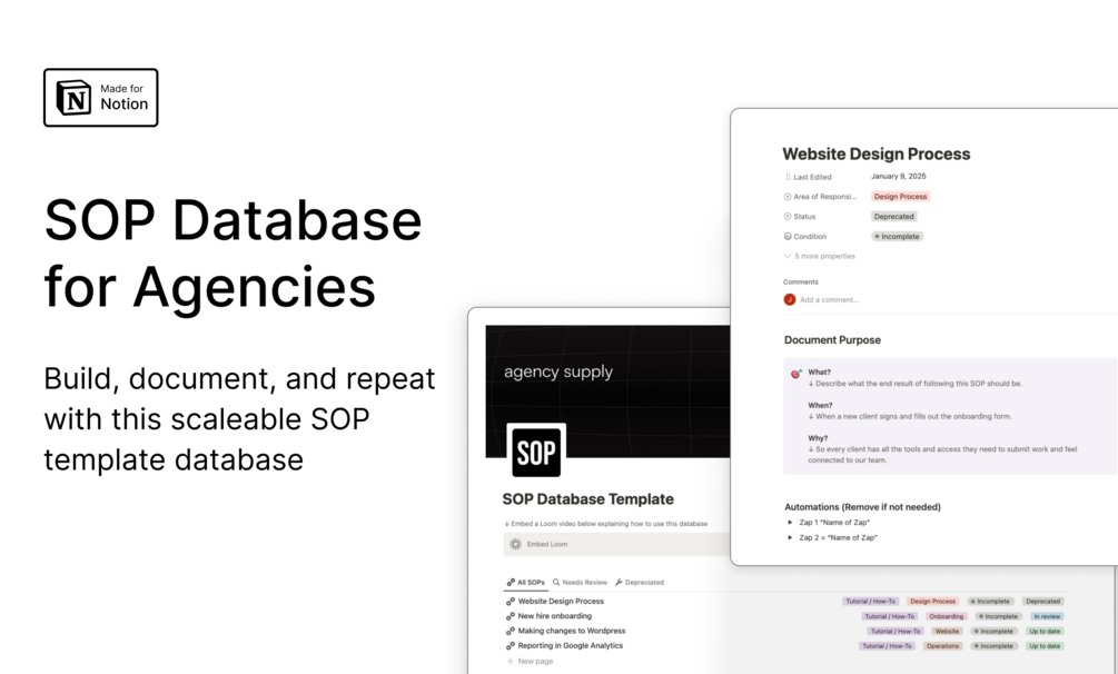 Road tested over the last π₯ 2+ years of agency work π₯ this SOP is lean and mean and will help your team build a well-oiled machine.