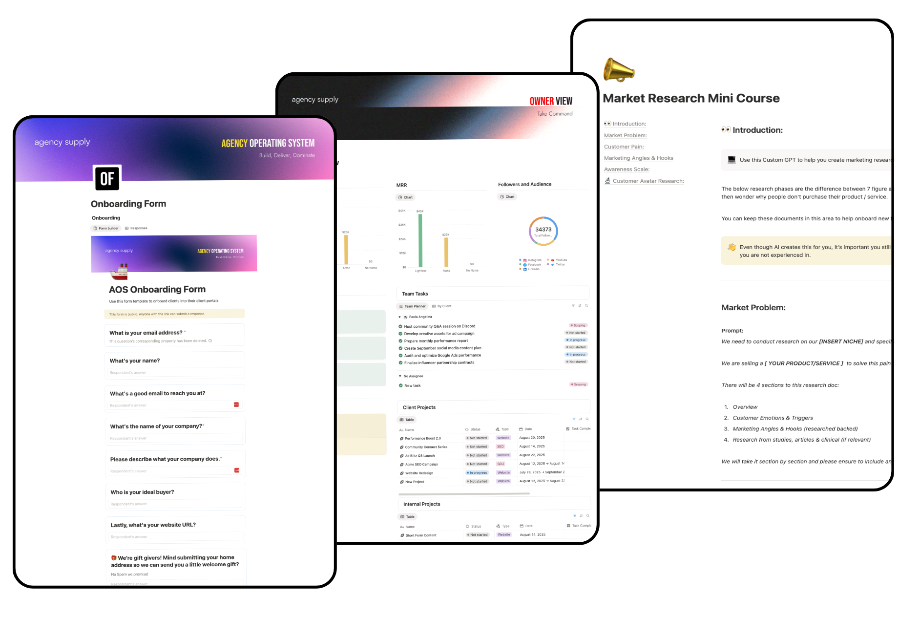 The complete operational system that eliminates chaos, saves 20+ hours/week, and turns your agency into a scalable machine—ready in one afternoon.