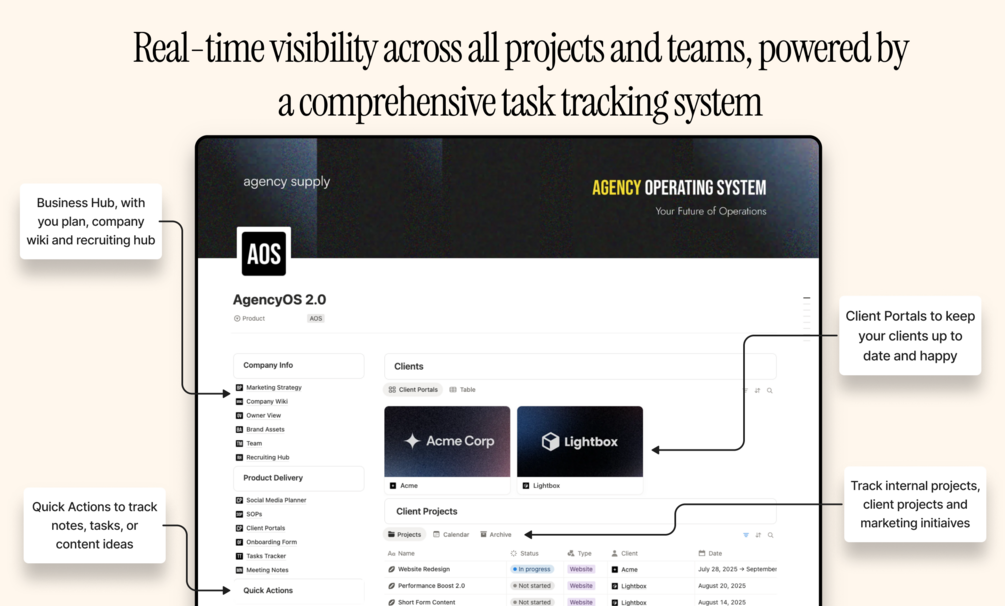āž”ļøĀ Agency OS isn’t just a Notion template — it’s a battle-tested backend system that: