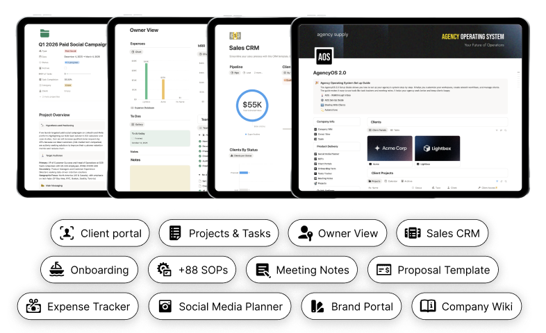 Agency OS is the plug-and-play Notion backend that Service Businesses use to streamline operations, eliminate founder dependency, and scale without chaos.