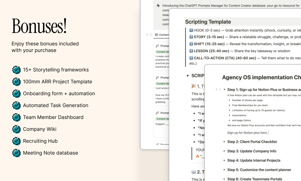 15 proven short-form video formats that agency owners are using to build massive audiences—steal the content strategy that actually works and grow while you're getting organized. Because getting your backend right is only half the battle. You still need clients. (Value: $147)