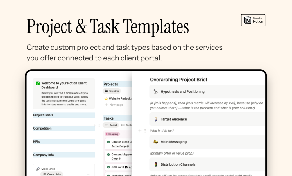 āœ… Client Portal & Dashboard System:Ā Professional client-facing workspace that delivers a premium experience, centralizes communication, and positions your agency as the powerhouse you are while saving 5+ hours weekly.
