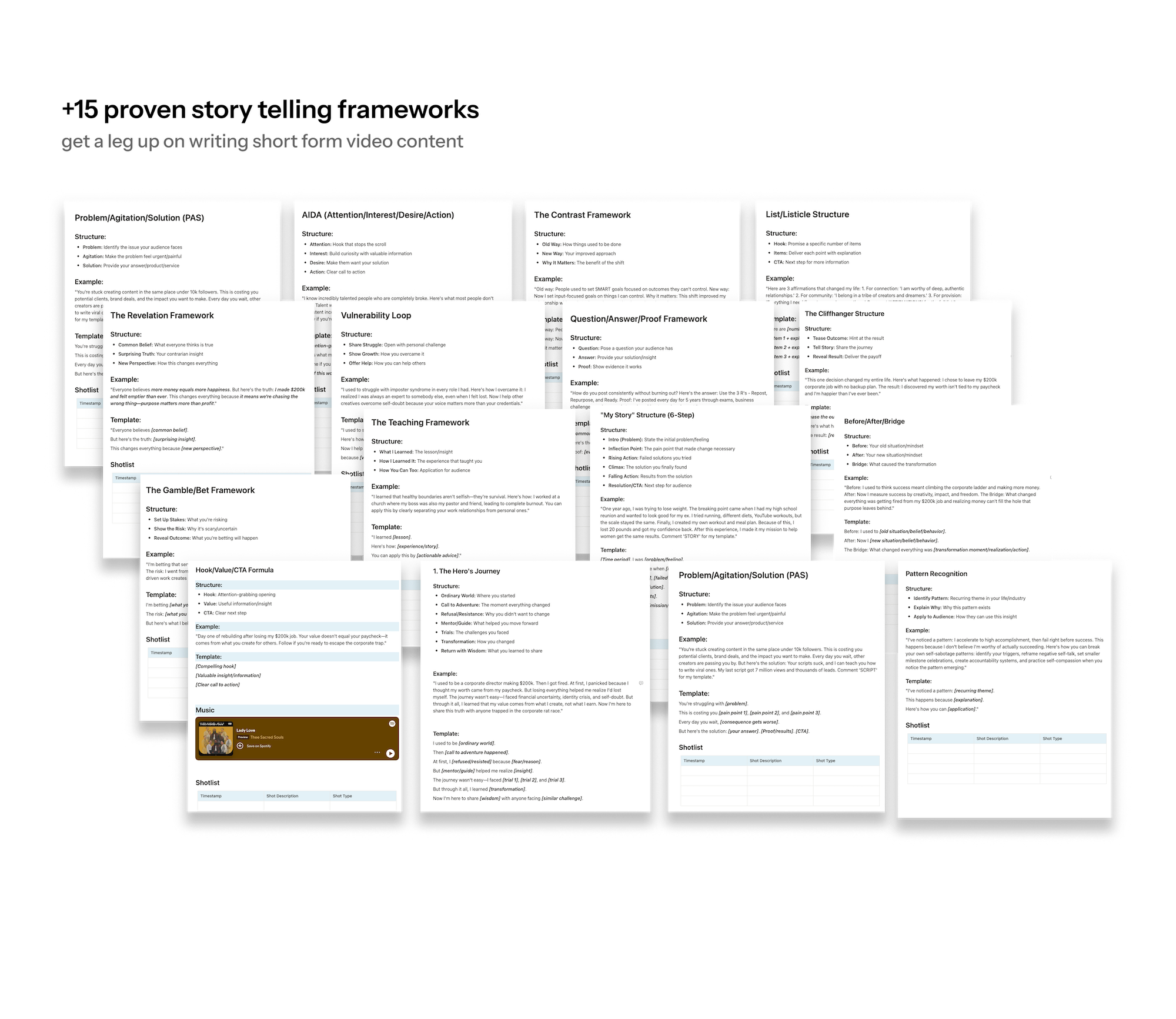• 15+ Short-Form Video Templates - Ready-to-use frameworks for creating engaging reels, TikToks, and YouTube Shorts